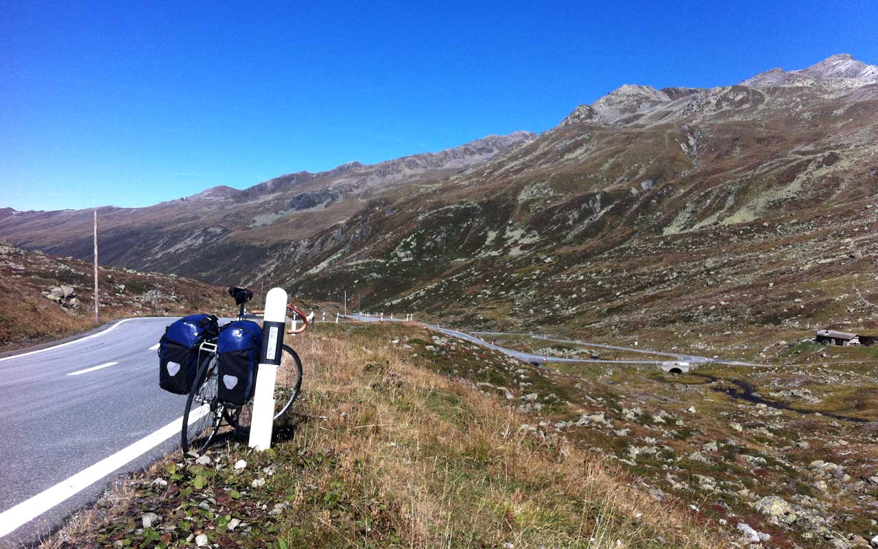 Nach der heftigen ersten Viertelstunde komme ich in Tritt und treibe Luzie die Serpentinen hoch. Wobei treten hoffnungslos übertrieben wäre – wir kriechen mehr gen Passhöhe.