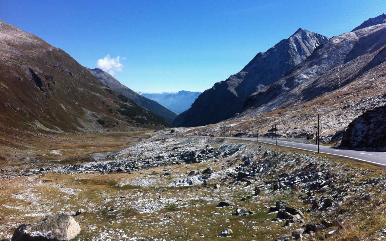 Rauf auf Luzie und los auf die Passstraße. Die Fahrt verläuft sehr gemütlich, da ich mich an der alpinen Umgebung garnicht satt sehen kann. Wahnsinnig schön hier oben, die grandiosen Ausblicke